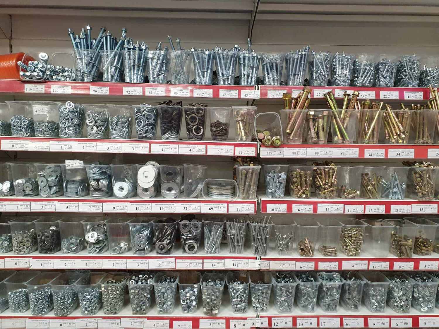 1. Все виды крепежа (саморезы, болты, гайки, дюбеля, пластины и т.п.)